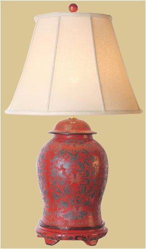 Buy Asian Furniture & Home Décor - 32" Red Etched Chinese Ginger Jar Oriental Table / Bedside Lamp Now