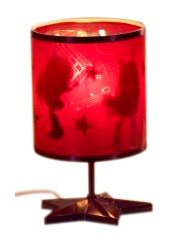 i bought this for myself(im 63) because a lamp i had in entranceway gave up the ghost and i needed something cheap just to offer a little light until i turn on the wall lamps.anyhoooooooooooo. its very dim with the red shade and the doodoodad inside the lamp that is supposed to turn with the heat doesnt work. but for $6 and what i needed i guess its okay