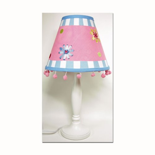 Encourage dreams of secret gardens and magical places with this adorable daisy flower lamp. Its bright, embroidered designs add a fun burst of color to really brighten up a room. The pink dot trim is playfully stylish and brings an extra dose of girly fun. This lamp is perfect for nightstands, tables, and desks.
