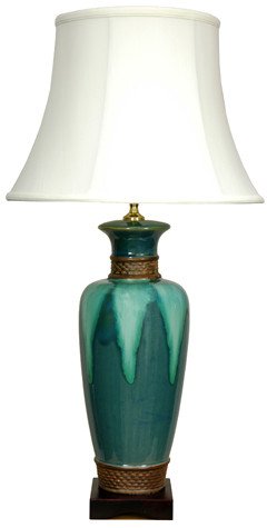 - Measures 20" Tall Top to Bottom - Great Desk Lamp, Table Lamp, or Bedside Lamp- Fine Quality High Temperature Porcelain Vase w/ Deep Turqoise Glaze